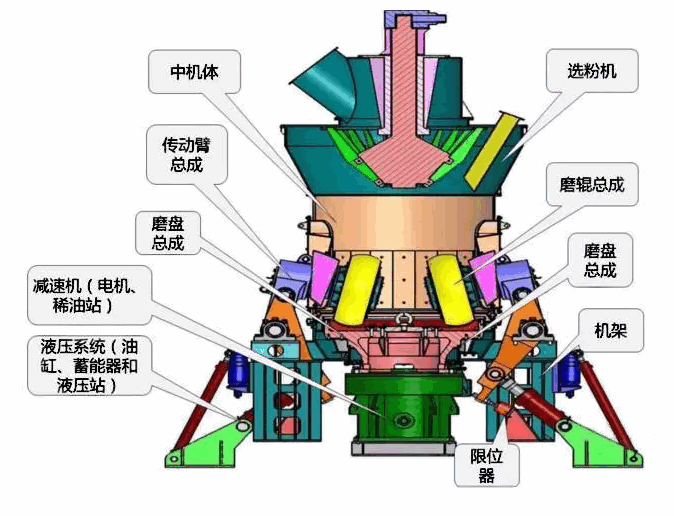 立磨在生产中具有生产效率高,节能环保、物料烘干能力强、产品质量稳定易检测、磨损小,利用率高等优点,但在实际生产中通常会有过度振动等生产及安全问题,下面我们来简单了解一下立磨的几大关键零部件的功能及维护,以便更好的来保障立磨的安全生产。