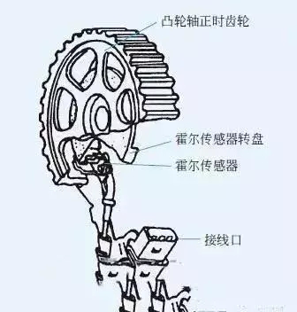 曲轴位置传感器是一个测定发动机转速和曲轴转角准确位置的感应式传感器。根据曲轴位置无法获悉某一气缸处于压缩阶段还是换气阶段的信息。只有明确识别出哪个气缸正好处于压缩行程时,才能产生第一个点火火花。霍尔传感器(凸轮轴位置传感器)测定凸轮轴位置,与曲轴位置传感器一起识别第一个气缸的点火上止点。通过对比曲轴传感器和凸轮轴传感器的信号进行气缸识别。